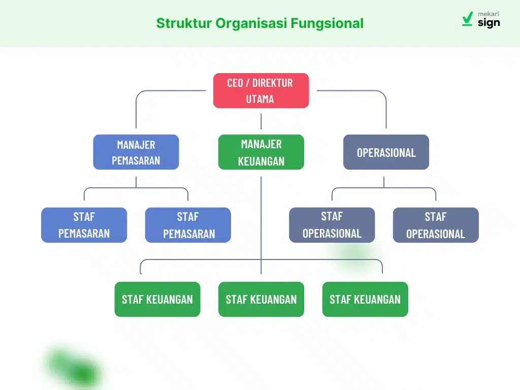 Struktur ini mengelompokkan anggota berdasarkan keahlian, seperti pemasaran, keuangan, atau operasional. Model ini sangat umum digunakan karena mampu meningkatkan efisiensi dan spesialisasi di dalam organisasi.