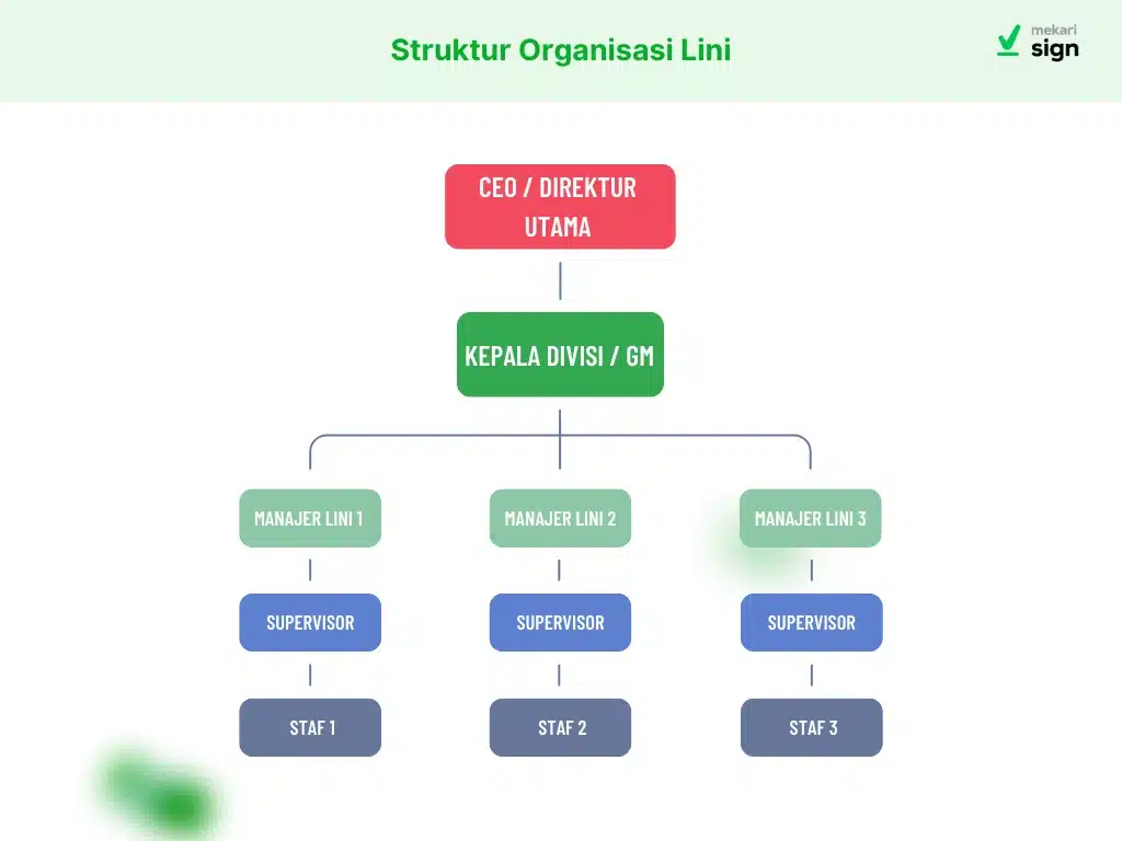- Gunakan layout hierarki vertikal (atas ke bawah) agar struktur lebih mudah dipahami dan mengikuti standar umum organisasi.