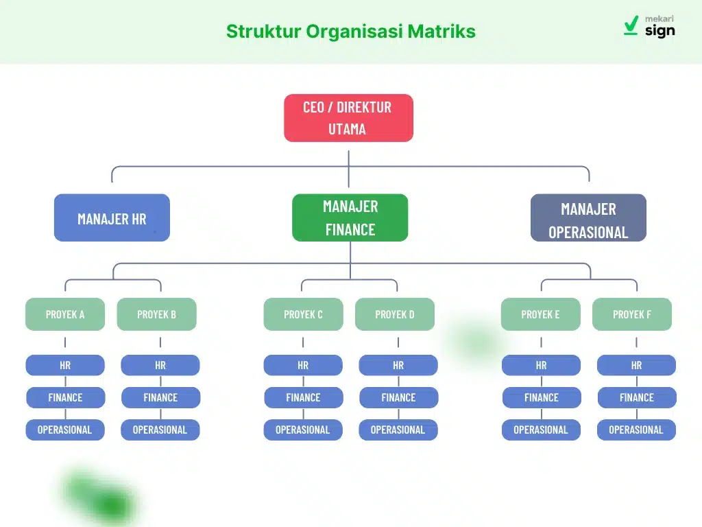 Model ini menggabungkan struktur fungsional dan divisional, di mana karyawan memiliki dua atasan: satu berdasarkan fungsi dan satu lagi berdasarkan proyek. Keunggulannya adalah fleksibilitas dalam pengelolaan proyek, meskipun koordinasi antar tim bisa lebih kompleks.