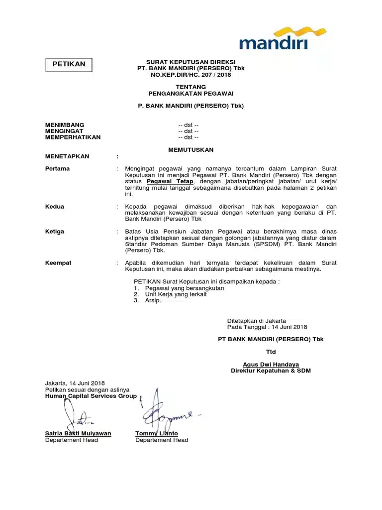 • Tanda Tangan dan Nama Jelas: Nama pejabat yang berwenang beserta tanda tangannya sebagai bentuk validasi.