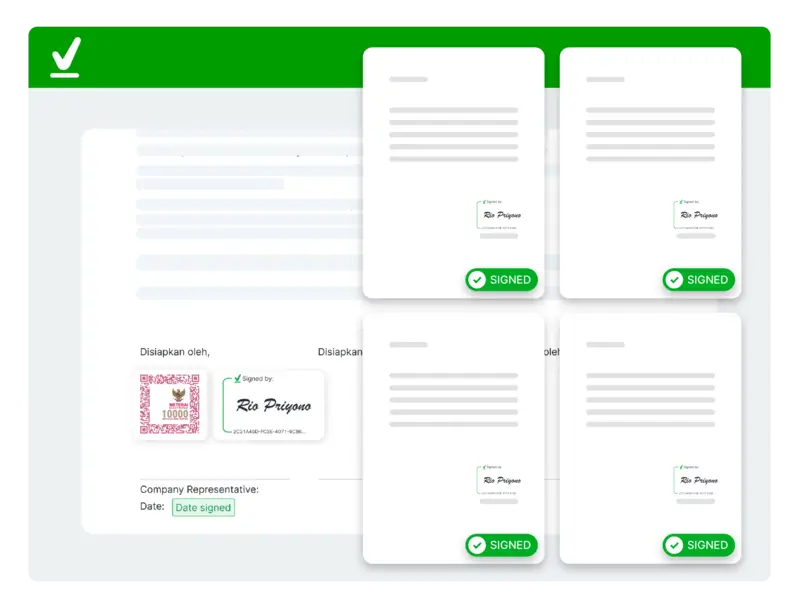 e-Signature (tanda tangan elektronik) bisa digunakan untuk banyak penandatangan sekaligus pada satu dokumen atau serangkaian dokumen. Bahkan, ini adalah salah satu keunggulan utama dari penggunaan tanda tangan elektronik dibandingkan dengan proses tanda tangan basah tradisional, terutama untuk dokumen yang memerlukan persetujuan dari beberapa pihak.