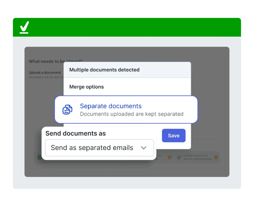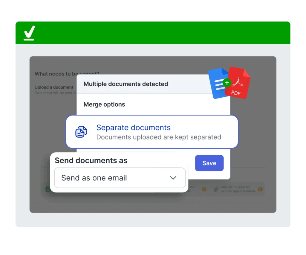Fitur ini memungkinkan Anda menggabungkan beberapa dokumen menjadi satu file PDF atau mengirimkannya dalam satu email sekaligus untuk ditandatangani.